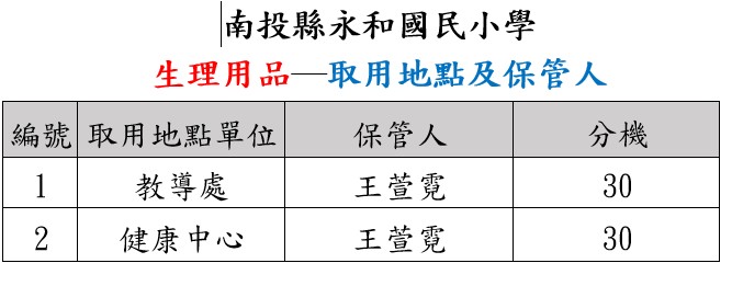 本校於健康中心、教導處備有生理用品,如有緊急需求之人員可至上述地點取用。