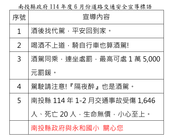 酒後找代駕,平安回到家。 喝酒不上道,騎自行車也算酒駕! 酒駕同乘,連坐處罰,最高可處1萬5,000元罰鍰。 駕駛請注意!『隔夜醉』也是酒駕。生命無價,小心至上。